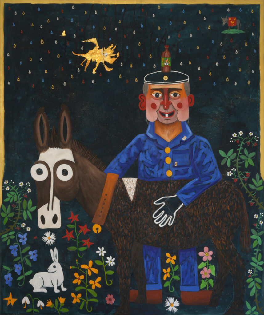 Narrenkop II, 40 x 60 cm, 2750,-Narrenkop met vliegje op neus, 40 x 60 cm, 2750,-